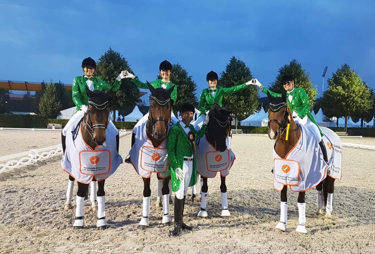 Van de Griend war kurzerhand für die eigentlich gemeldete Jule Ditthardt eingesprungen und musste nach lediglich einer Probe das gesamte Programm abspulen. Nur knapp hinter dem ersten Platz schaffte es mit insgesamt 18,6 Punkten der Kreisverband Düren unter Leitung von Sabine Fuchs. Dritter wurde das Krefelder Quartett, bestehend aus Angela Bißels, Christina Dahl, Nicole Louven und Iris Rommerskirchen. Herzlichen Glückwunsch allen Reitern!